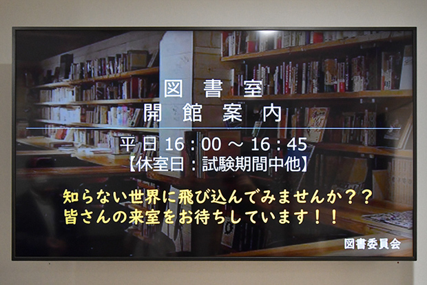 図書室を利用するきっかけづくりに、デジタルサイネージを活用。