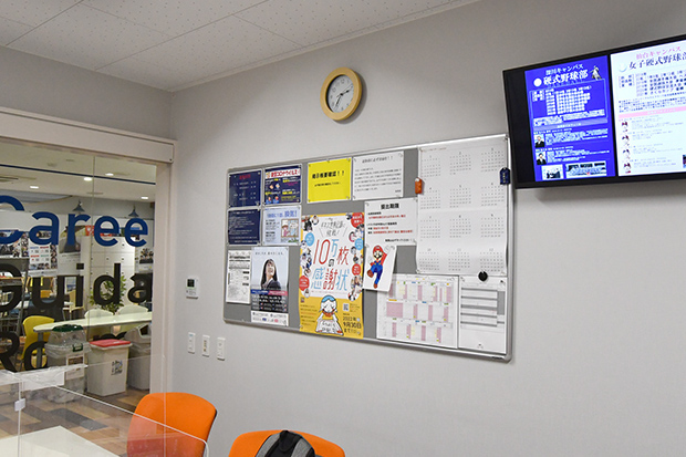 デジタルサイネージは、距離が離れている拠点とも手軽に情報を共有したり更新することができるので、関連校とコンテンツを共有し「映像による交流」を進めていくのも面白そうですね。専修学校クラーク高等学院 天王寺校には、大阪梅田校と同じリコーのデジタルサイネージが導入されているので、相互にコンテンツを配信するなどして、両校の生徒がお互いに刺激し合い成長していける環境づくりができたらと思っています。