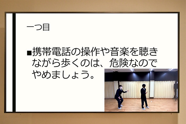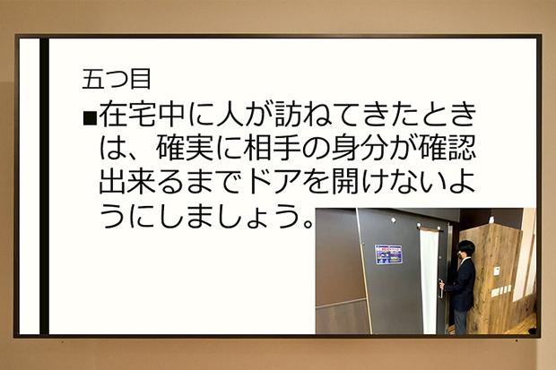 「振り込め詐欺」、「盗難」など様々なテーマの防犯啓発動画を生徒たちが作成。