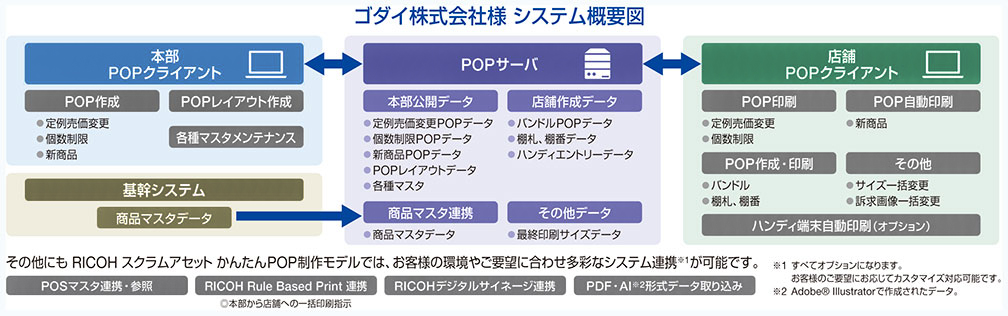 ドラッグストア「ゴダイドラッグ」様では、2021年にRICOH スクラムアセット かんたんPOP制作モデルを活用して、実務に最適化された形でRICOH MightyPOP Vを79店舗に導入。それまで課題となっていた、店舗におけるPOP出力業務をシンプルにして、業務負荷の低減・業務の平準化を実現しました。