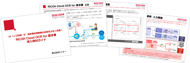 RICOH Cloud OCR for 請求書の特長、機能、価格をわかりやすくまとめた “「RICOH Cloud OCR for 請求書」導入検討ガイド” をご用意いたしました。ぜひご一読ください!