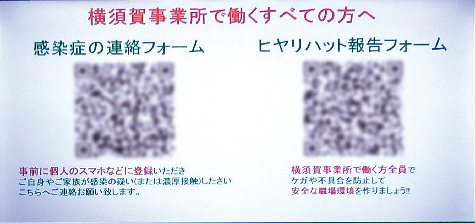 新型コロナウイルス感染症の連絡フォームとヒヤリハット報告フォーム(QRコード)