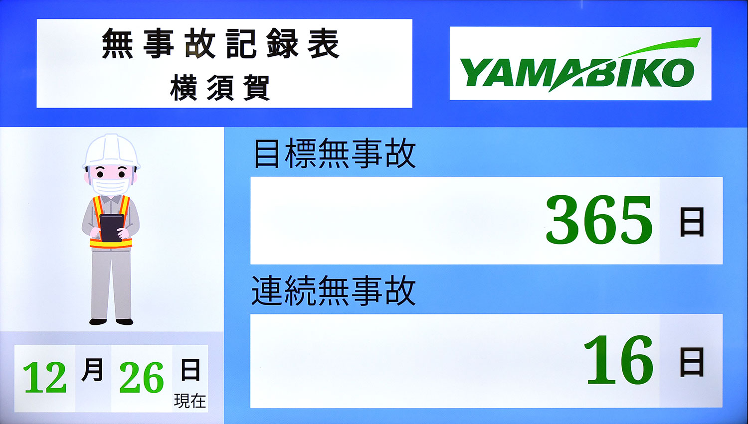 工場において最も重要なのが安全です。リコーが提供している無事故記録表のコンテンツは、日付と日数が自動的に更新され、正確に日数をカウントできるのがいいですね。安全第一を徹底していくため、全事業所で活用しています。