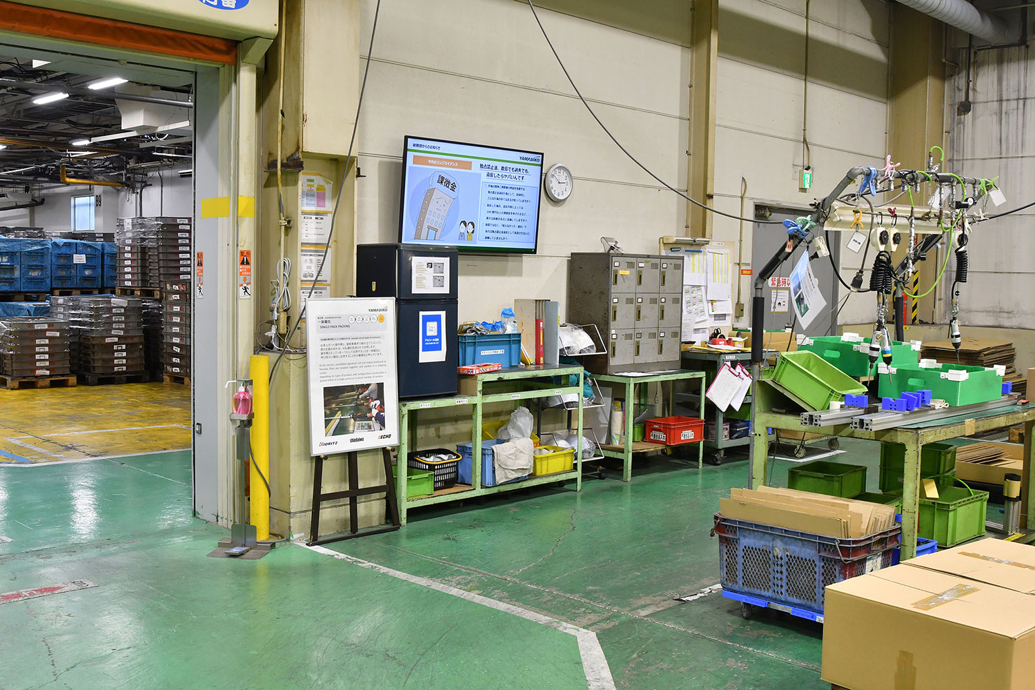 ・デジタルサイネージにより、パソコンが手元にない現場の従業員も、工場内のディスプレイを通じて手軽に最新情報へアクセスできるようになった。