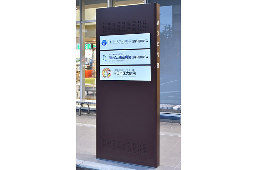 日本医科大学付属病院は明治43年に開院して以来、先進医療をはじめ、高度な医療を提供し地域医療に幅広く貢献していくことを目指しています。高度な医療を追求し常に進化していくには、設備の刷新も不可欠です。そこで、法人全体のプロジェクトの一環として新病院を建設。今まで以上に快適に来院いただけるよう正面玄関には広いロータリーを新設し、当院が運営する巡回バスと花と森の東京病院が運営する巡回バス、そして文京区コミュニティバス「Bーぐる」も乗り入れることが決定しました。