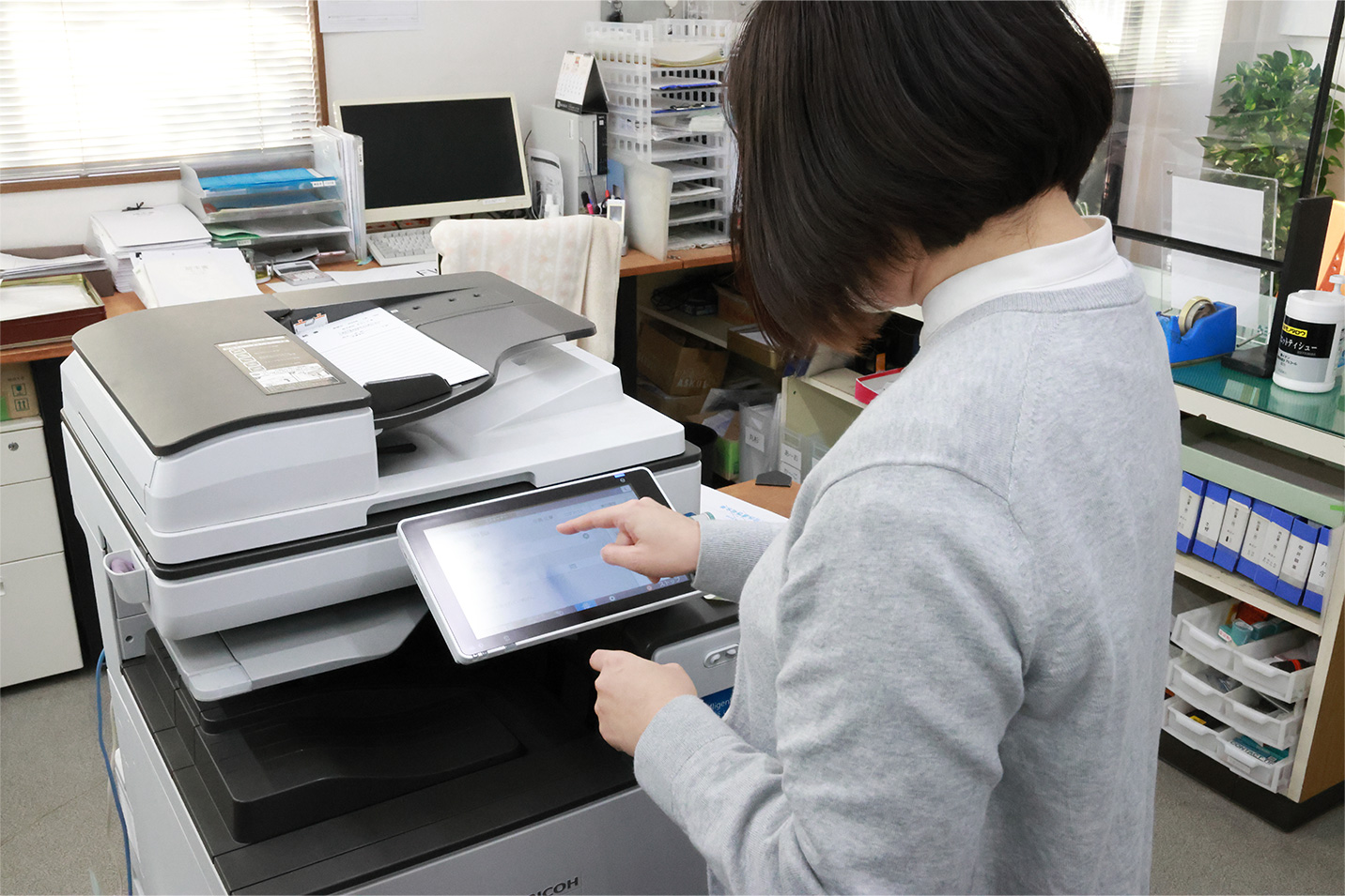 小島様は「月末の請求業務が終わると、納品書、請求書を始めとして取引に関連する書類はまとめてRICOH カンタンストレージ活用 for Boxを使って、一気にスキャンしてBoxに保存します。