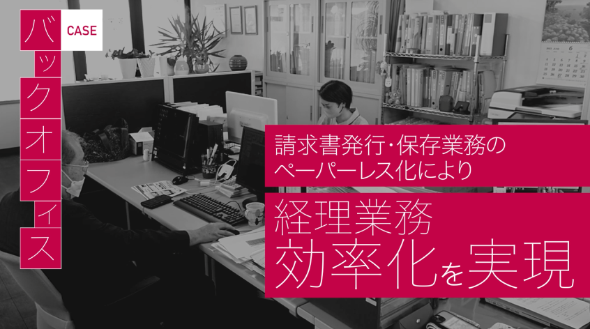 「以前は請求書の控えを毎月100枚くらいコピーしてファイリングをしていましたが、導入後はクリックすればデジタルデータで保存されます。また、案内状をつくったり番号順に揃え直したりして綴じるのも大変な手間でした。今では2回のクリックだけで済みますから、全然違います」(掛田恭子様)