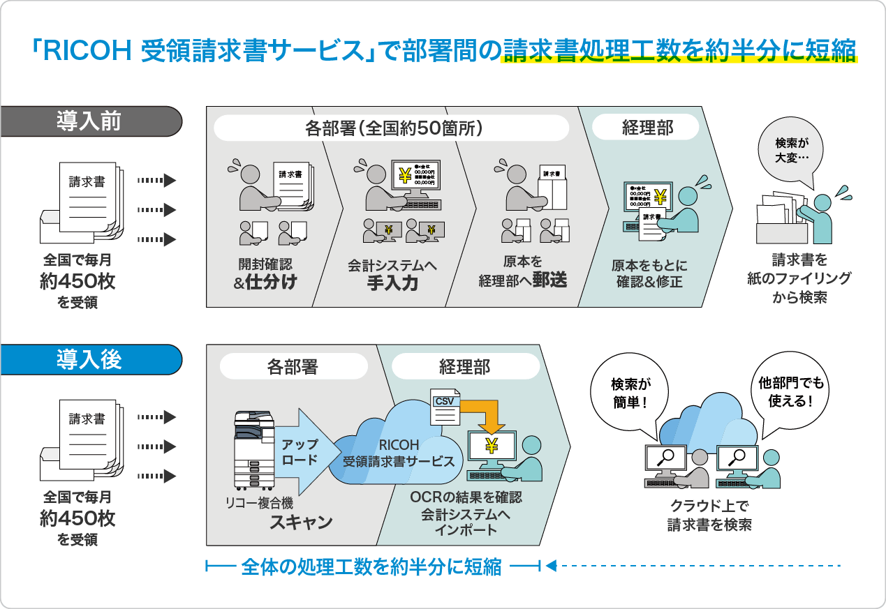 「約50箇所に点在する部署から届く伝票と請求書を処理しています。『RICOH