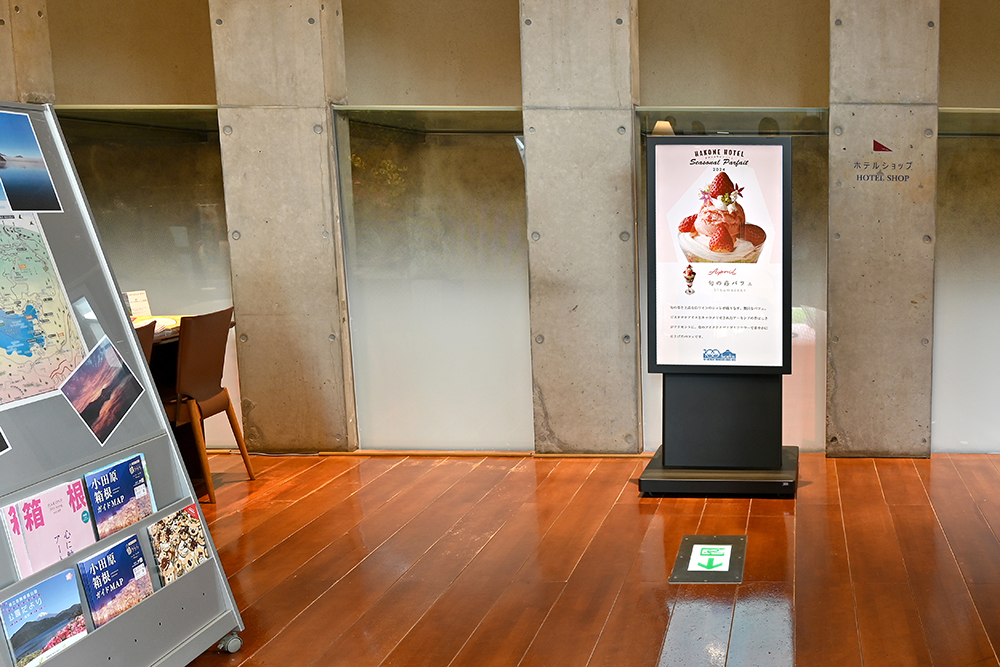 芦ノ湖を目の前に望むリゾートホテルとして、100年以上の歴史を誇る箱根ホテル様。芦ノ湖の向こうに箱根連峰と富士山を一望する景観や、メインダイニングでのお食事、あるいは、芦ノ湖水上アクティビティを楽しみに、国内外からたくさんのお客様が箱根ホテルに滞在されています。また、箱根ホテルを拠点に観光スポットを周遊されるお客様も多くいらっしゃいます。箱根ホテル様では、こうしたお客様の箱根滞在がいっそう豊かなものとなるよう、ホテル内外の情報を幅広く、より分かりやすくご案内するツールとして、リコーデジタルサイネージを活用されています。