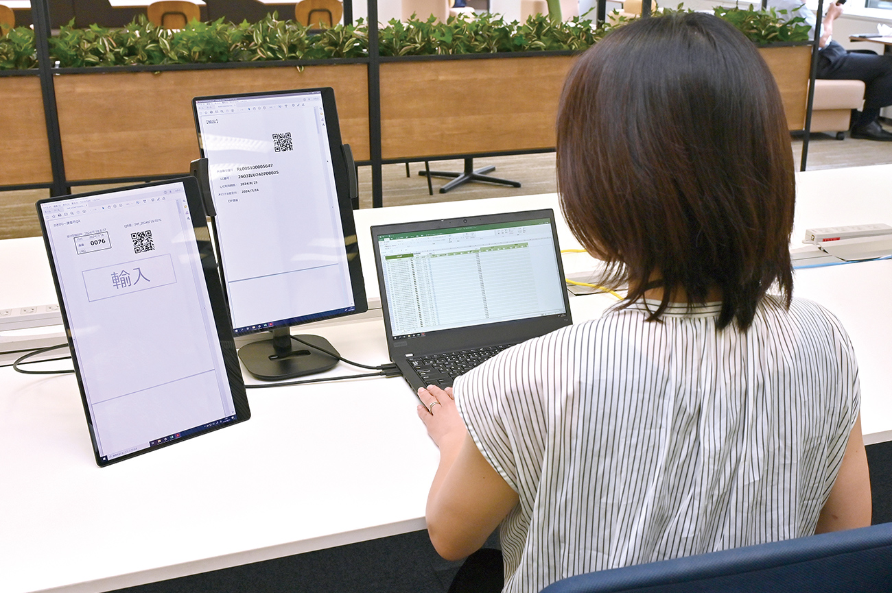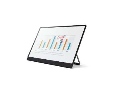 貿易取引に伴う一部の書類のやり取りは、データではなく紙の原本で行うことが国際的な商慣習となっています。みずほ銀行 外為事務第二部様では、紙の原本をスキャンしモニター等に表示することでペーパーレス化を目指されていました。ただ、横型のモニターでは書類全体を表示しにくく、大型モニターでは目が疲れてしまうなど、かえって業務負荷が大きくなってしまうことが課題に。そこで、高精細でありながら目にはやさしく、しかも紙のような手軽さを備えたセカンドディスプレイとして、RICOH Portable Monitorを導入されました。RICOH Portable Monitorで書類全体を大きく表示し、手書きの文字まで鮮明に表示。スリムで軽量なため移動もらくらく。パソコンの横に置いたり、紙のように平置きにしたり、作業をしやすい場所におけるため生産性が向上。紙で行わざるを得ない外為事務をペーパーレス化し、業務効率アップを実現されています。