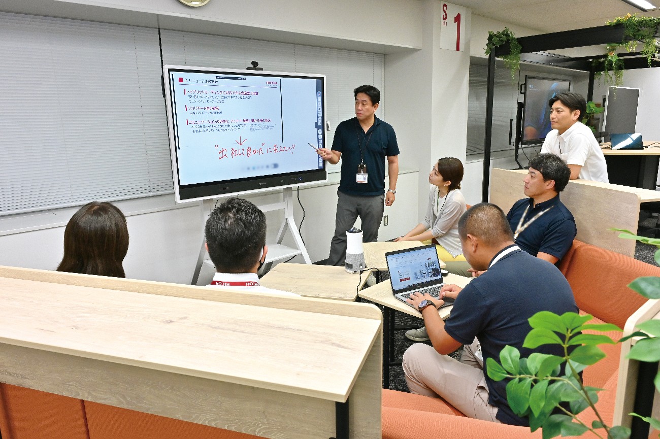 矢島「リコージャパンでは、新しい価値の創造を目指して常に社内実践を行っているので、今回のリニューアルにおいても『これで完成』とは考えていません。限られた予算・スペースを最大限に活かし、一定の効果を生むことはできましたが、まだファーストステップです。引き続き社員の声を聞きながら改善を重ね、RICOH Smart Huddleをさらに進化させていく予定です。