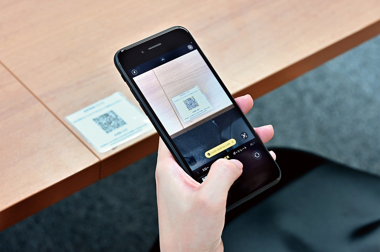 フリーアドレスでも席の事前予約が可能。QRコードを読み込んで予約・利用。