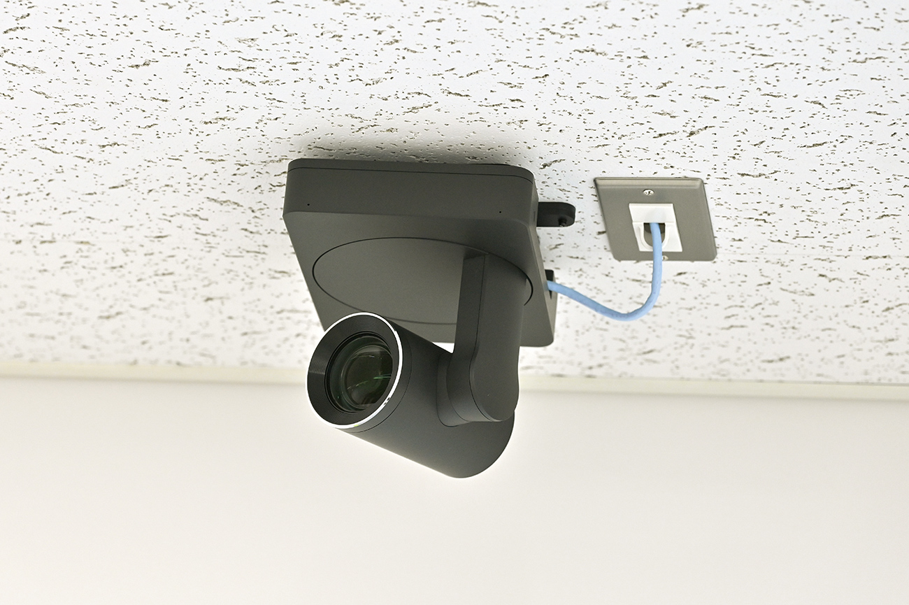 自動追尾カメラ。自動的に話者を検知し、臨場感のある映像を配信。