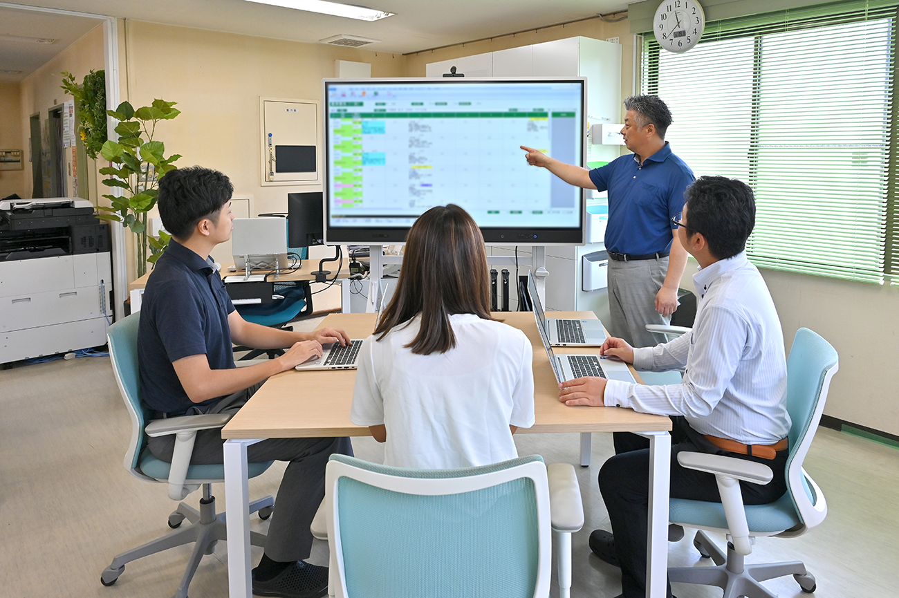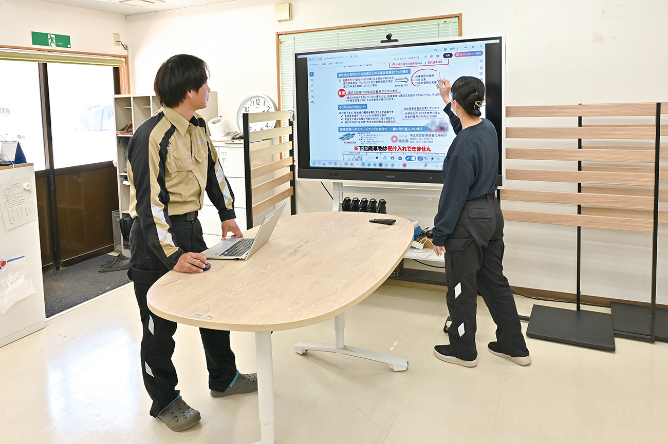 熊倉様「何よりも、基幹システムのソフトをインストールできるところに興味を持ちました。これまで、各従業員のPCに基幹システムを入れていたのですが、日中は外出している従業員が多く、基幹システムを開く機会は限られています。この状況を踏まえると、電子黒板に基幹システムをインストールして、共同で使用した方が効率的ではないか、と。とはいえ、電子黒板にインストールが可能なものなのか分からず、リコージャパンに相談し基幹システムのメーカーと検証してもらった結果、RICOH Collaboration Boardなら可能であることが分かり、本社と所沢エコ・プラントに1台ずつ導入することにしました。」