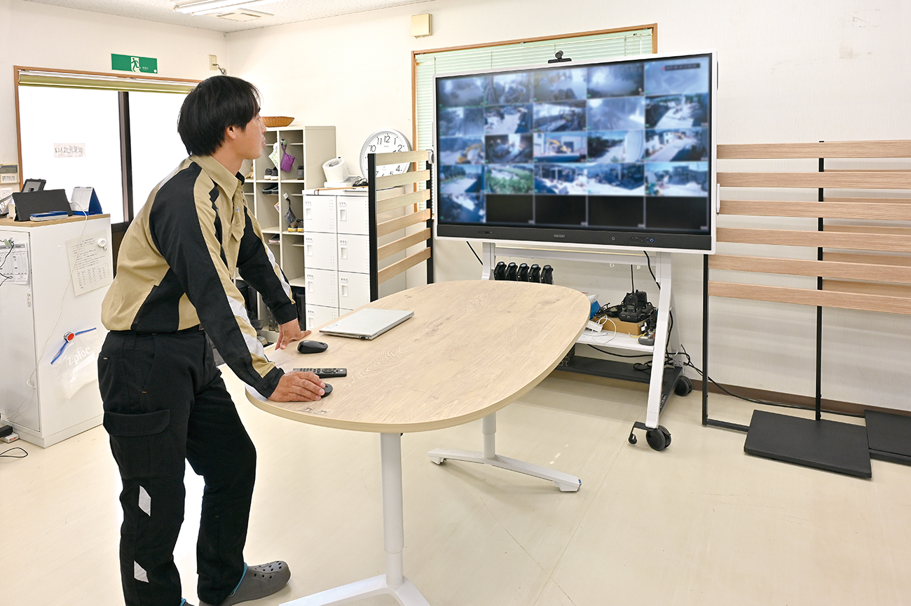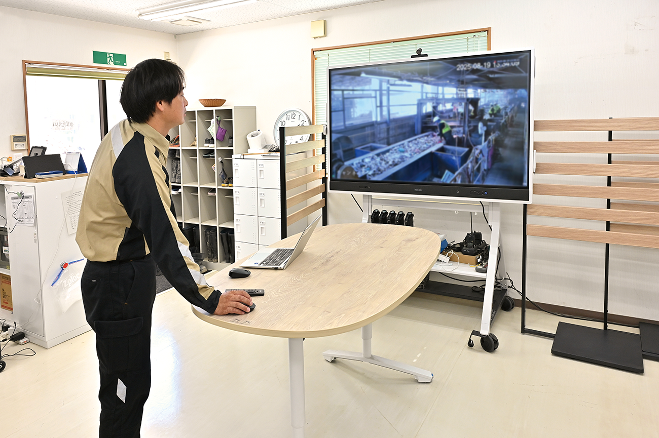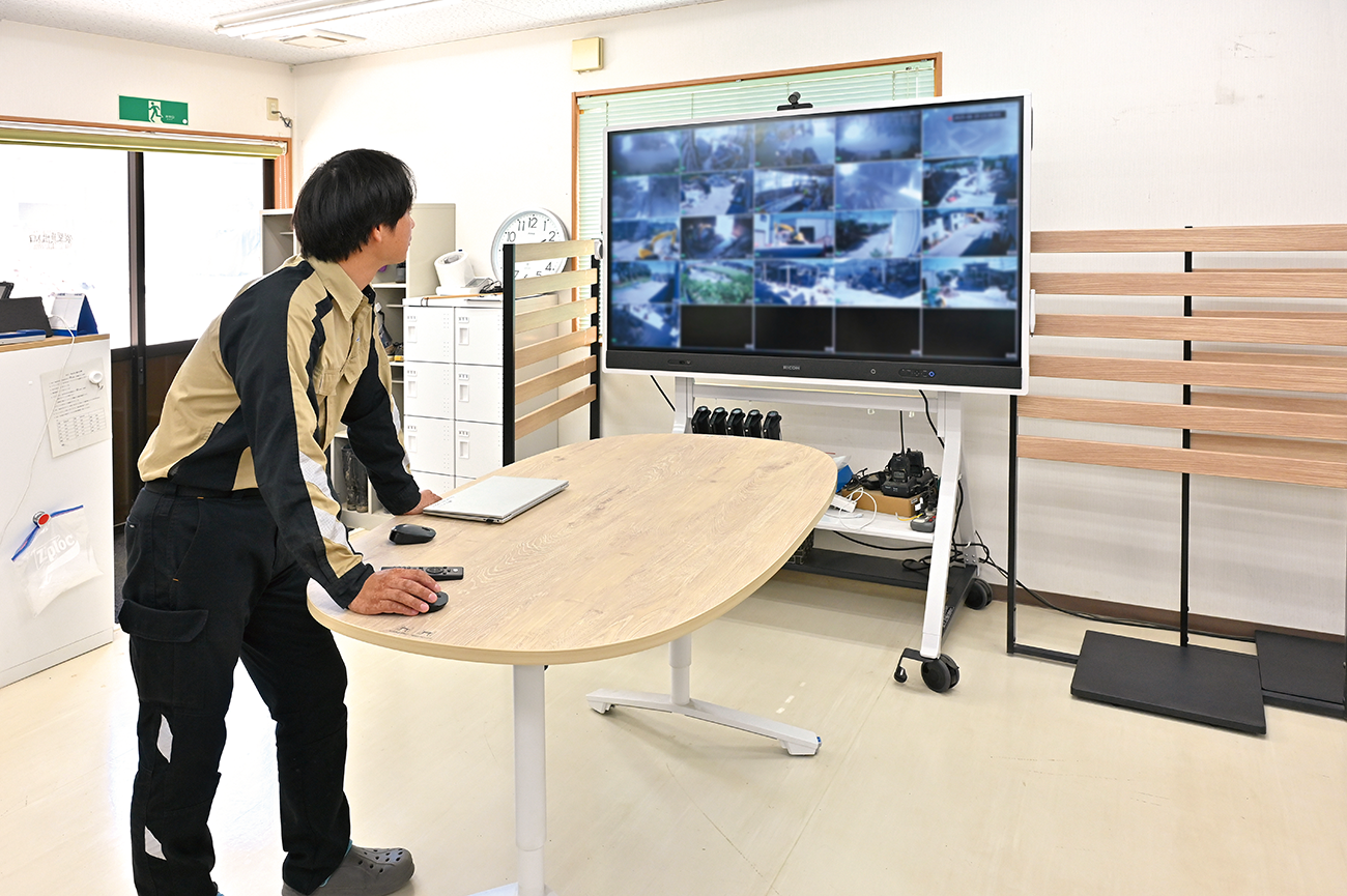 青木様「所沢エコ・プラントは約1万㎡と非常に広大です。そこで、事務所からでも各現場の様子が分かるよう場内21カ所にカメラを設置し、その映像をRICOH Collaboration Boardに常時表示しています。現場から無線で連絡が入ったら、該当するカメラの映像を画面いっぱいに拡大。大画面で鮮明な映像を見ながらやり取りできるので、現場に行かなくても詳細な状況を把握し、的確な対応ができるようになりました。」