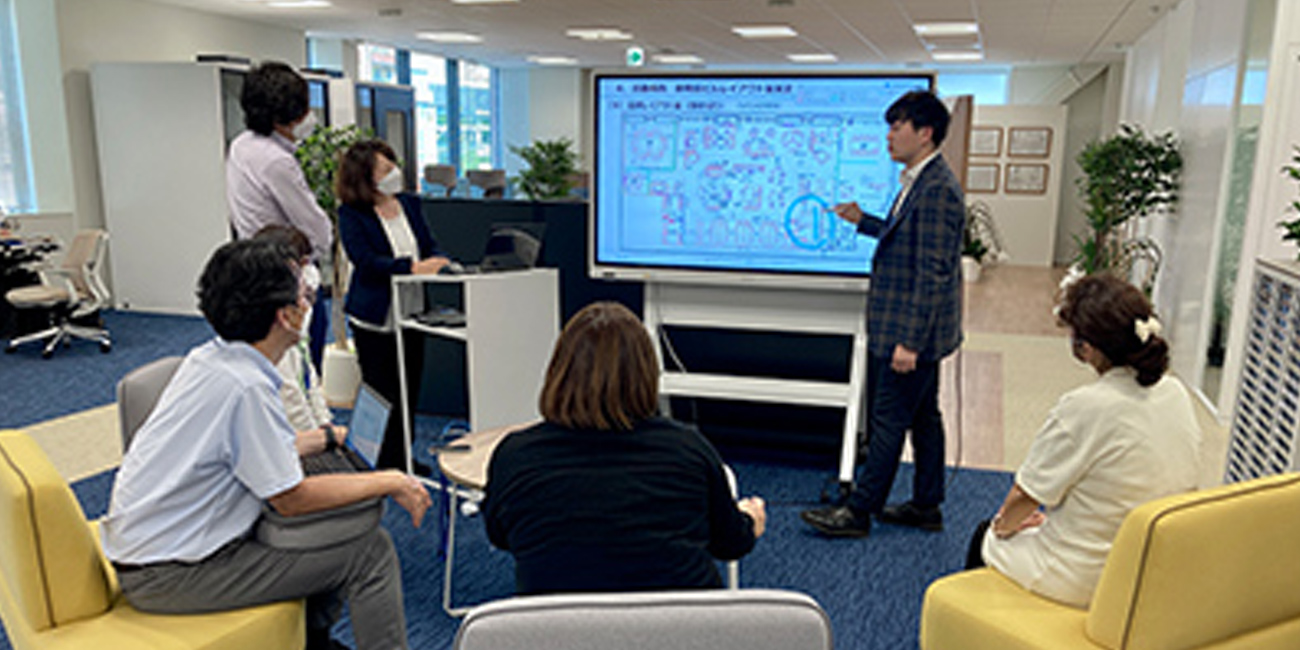 福嶋様「大画面で情報共有をしたり、書き込みながら打ち合わせをすると、話す方も説明しやすいですし、聞く方も理解が深まると思います。特に、新入社員に複雑な業務フローを説明するときに、その効果を実感しています。