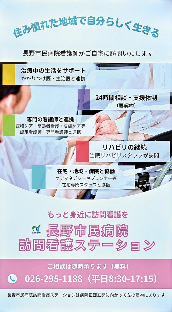 長野市民病院様は、市民の皆様からの要望を受けて建設された高度急性期病院です。「がん診療」「救急医療」「脳・心臓・血管診療」の3領域を柱に、地域における救急・急性期医療の中核を担われています。その一方で、地域全体で療養生活を支援する地域包括ケアにも力を注ぎ、急性期から回復期、在宅復帰まで切れ目のない医療を提供されています。