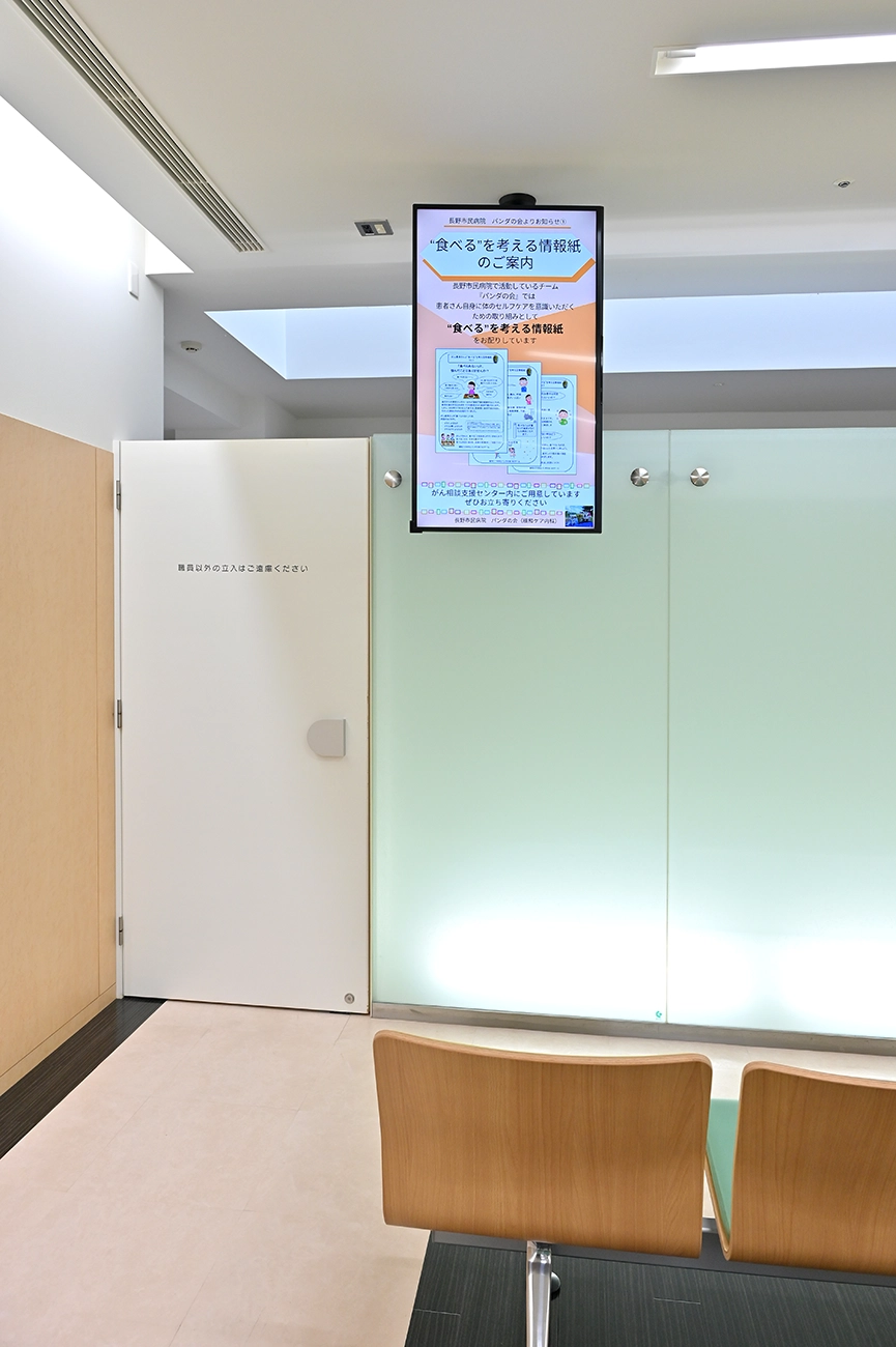 また、省スペースからたくさんの情報を発信できるため、情報発信量は以前よりも増加しています。職員たちも「訴求力の高いリコーデジタルサイネージなら患者さんに見てもらえる」と、コンテンツ作成に積極的で、工夫を凝らしたコンテンツも多いです。動きのあるコンテンツに、患者さんも自然と目を向けてくださっているようです。