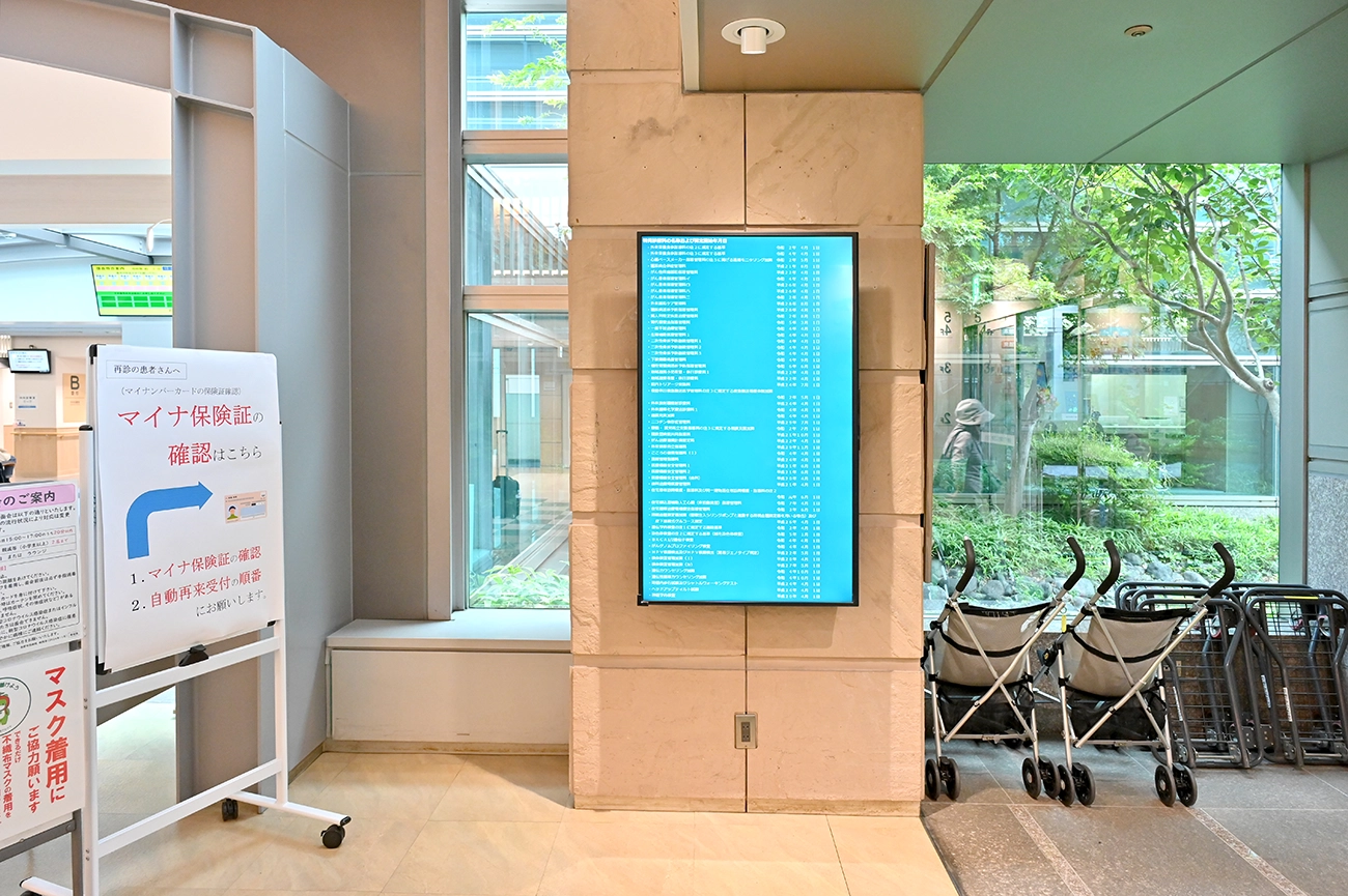 来院される皆様に、より心地よくお過ごしいただけるように、また、診察の待ち時間を多様な情報が得られる有意義な時間としていただけるように、デジタルサイネージの活用を検討しました。