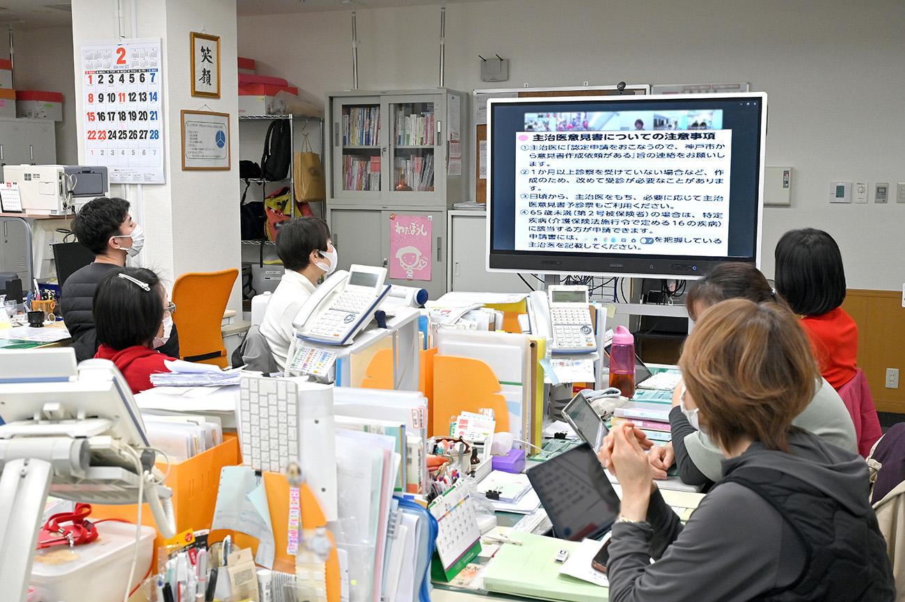 朝礼は、当日訪問予定の患者様一人ひとりについて、症状や最近のご様子、ご本人やご家族のご要望などを全員で共有する非常に重要な場で、往診の医師、看護師、理学療法士などのスケジュールも細かく確認していきます。このような内容の濃い朝礼を、遠隔でできるだろうかと心配していましたが、RICOH Collaboration Boardのおかげで、2拠点がスムーズにつながり、対面と同等の朝礼を実施できています」。