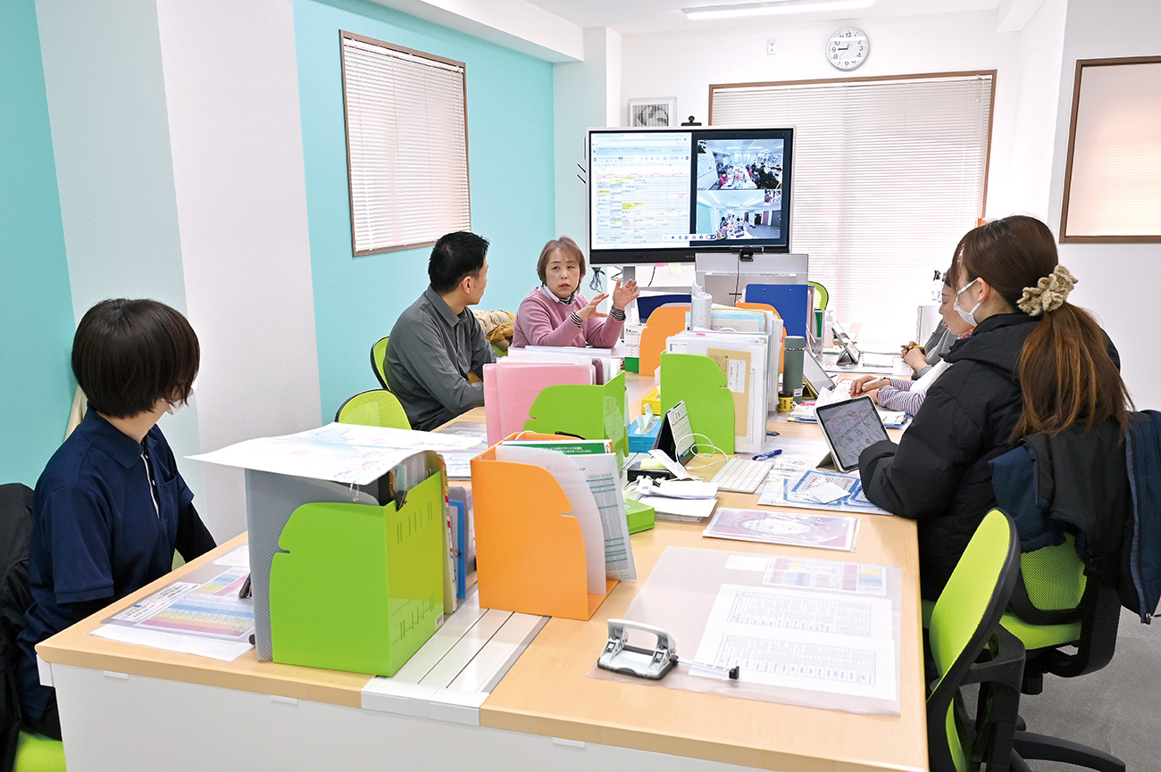 特に大きな効果を生んでいるのが朝礼です。本部と支所をRICOH Collaboration Boardでつなぎ、大画面でクラウド上のスケジュール表を共有。AIカメラにより事務所全体も話者の表情もクリアに見られるので、対面同様の一体感が実現。拠点を超えて、看護師、理学療法士、作業療法士などが連携し、患者様により充実したケアをお届けすることが可能に。その他にも、グループを横断する勉強会での活用など、コミュニケーションを円滑にするツールとして幅広くご使用いただいています。