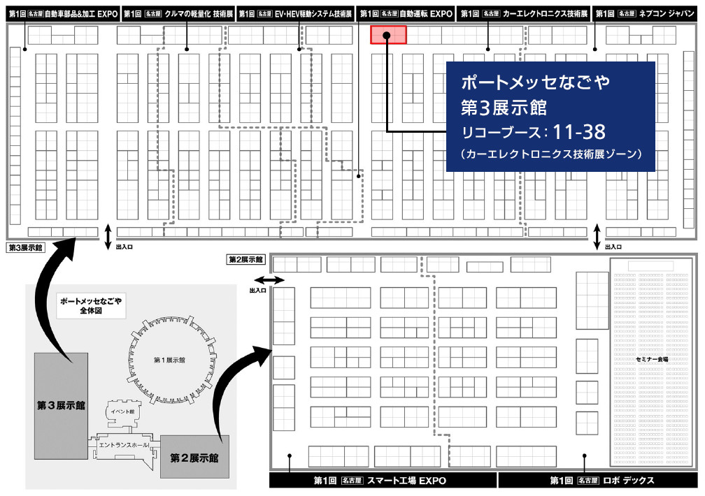 ポートメッセなごや 第3展示館 リコーブース 11-38(カーエレクトロニクス技術展ゾーン) |