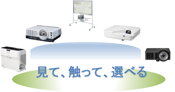 様々な設置環境に合わせて、多彩なプロジェクターをラインアップ展示。準備に手間と時間がかからない簡単操作で、すぐに授業がスタートできる大型提示装置をご紹介します。これから教室へ設置が進むプロジェクターを見て触ってご体感ください。