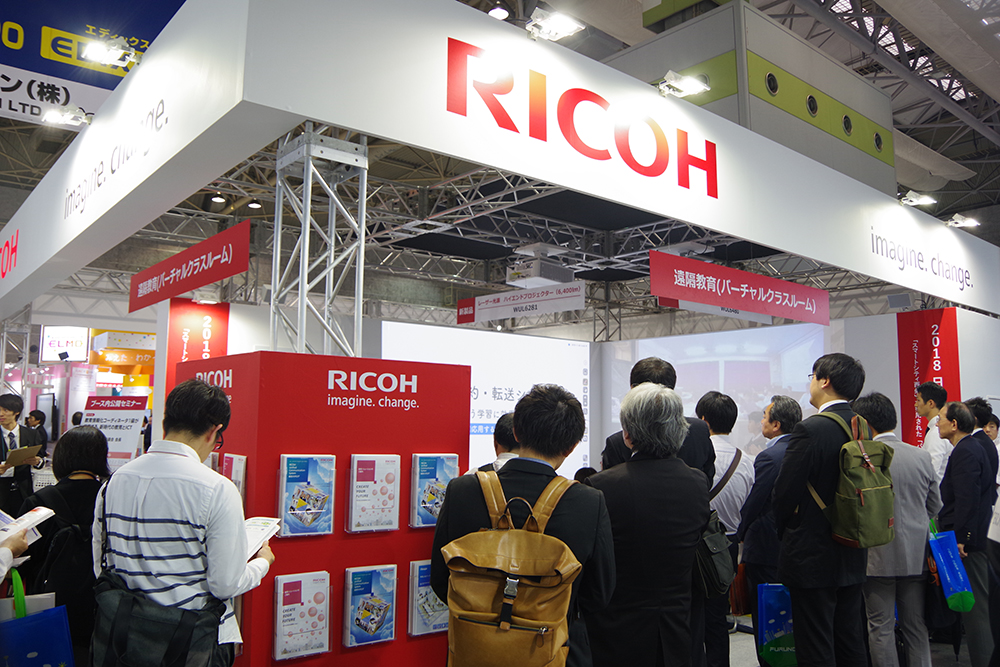 リコー・リコージャパンは、教育の質の向上に貢献するソリューションを、お客様導入事例やデモを交えてご紹介。遠隔教育ソリューションと、大型提示装置、無線LAN構築ソリューションをわかりやすく展示いたしました。