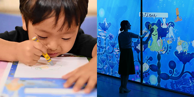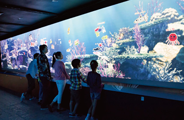 ファミリーに大人気。子供たちが描いた絵が大画面で動き出します。