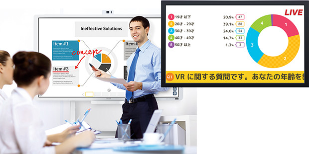 「書く・映す・共有する」を「いつでも・どこでも・誰とでも」。インタラクティブなセミナーやイベントが可能になります。