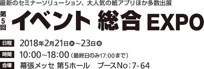 リコージャパン株式会社および株式会社リコーは2018年2月21日~23日に幕張メッセで開催される「第5回 イベント総合EXPO」に出展いたします。