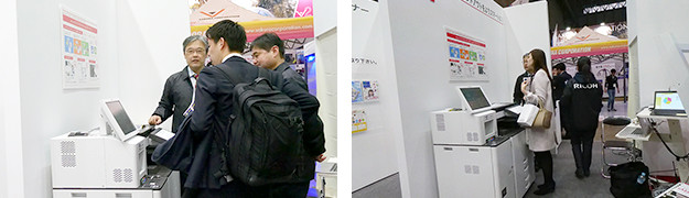 イベント会場などでの急なプリント対応に、ビジネスセンター向けのマルチコピーサービスをご紹介しました。モバイルからの出力、スキャンにも対応し、施設の管理をされているお客様から注目されました。