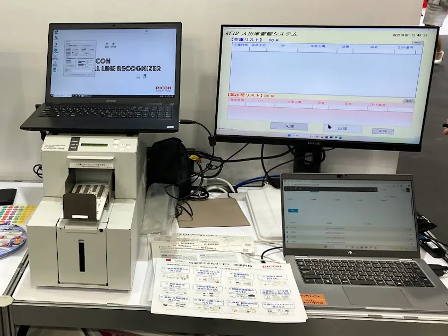 本イベントではRFIDタグの表面に印刷できるプリンタを合わせて展示いたしました。入出庫や在庫、あるいは作業進捗の見える化に貢献します。
