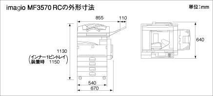 | 大きさ(幅×奥×高) | 670×640×1,130mm(本体・ADF・給紙トレイ含む) | |