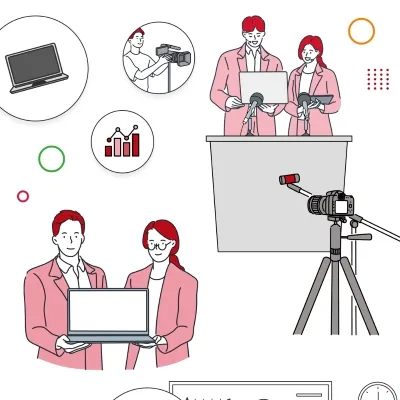 ビジネスイベント開催における成果創出まで、配信機材の手配からイベントプラットフォームの選定までトータルでご提案します。