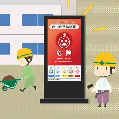 エリアに合わせた最新の暑さ指数を表示することで従業員やお客様への注意喚起が可能です。