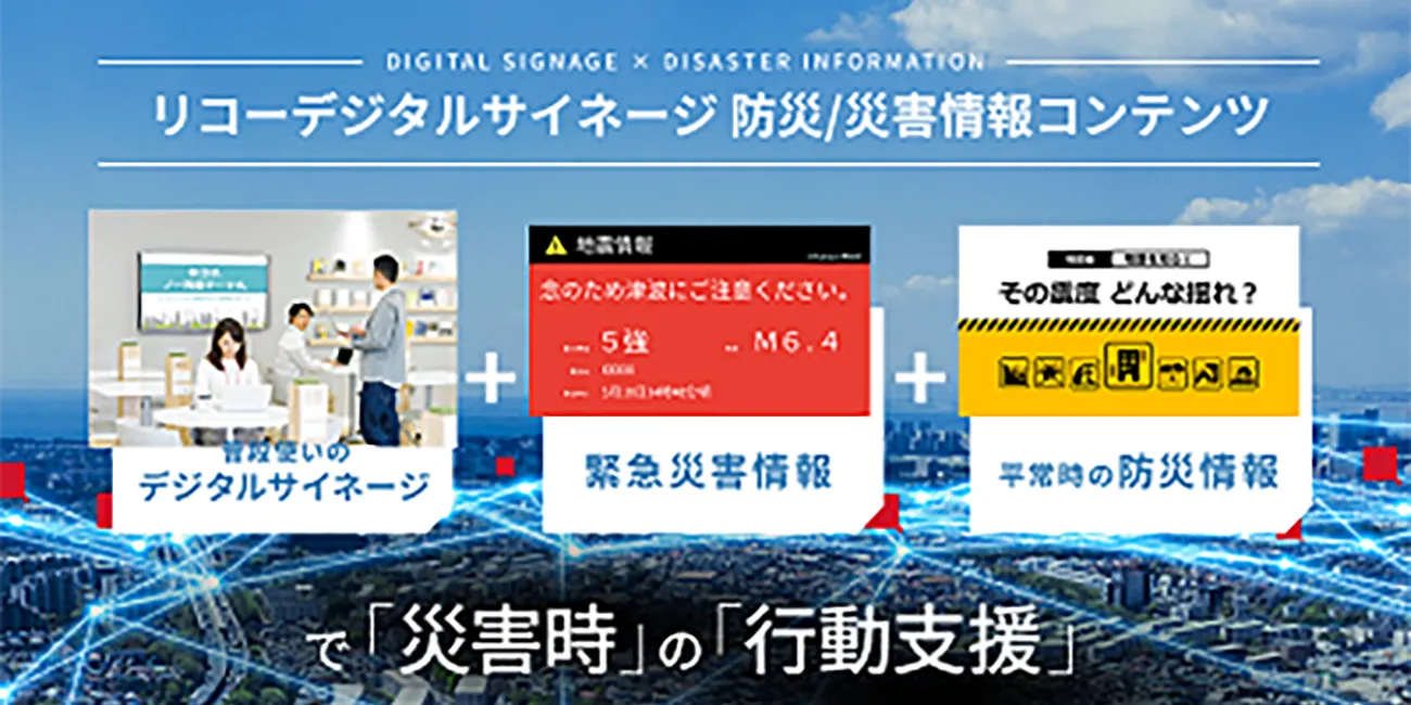 クラウド配信型のリコーデジタルサイネージで簡単運用。設置場所・目的に合わせた最適なサイネージでお客様の悩みを解決します。