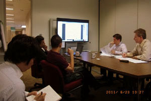 アメリカで観察した会議は、テンポが速く、時間もワンテーマに絞って次々に決定が下され20~30分ほどで終わらせることが多いのが特徴で、日本のように会議で数時間費やすことはほとんどありません。また、全員が顔を合わせる会議は全体の20%程度で、残りの80%はテレビ会議システムを使って様々なエリアから遠隔で参加するという会議スタイルが中心です。
