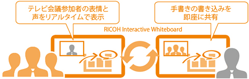 RICOH IWBは、遠隔会議システムと併用することでさらに効果を発揮します。WEB会議の映像/音声に加えて、RICOH IWBの書き込みや、資料も接続先と共有ができるので密なコミュニケーションができます。
