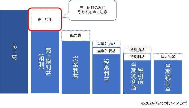 損益計算書に出てくるさまざまな利益のなかでも、売上総利益(粗利)はいちばん上に記載されています。よく「利益の源泉」とも表現されている利益です。