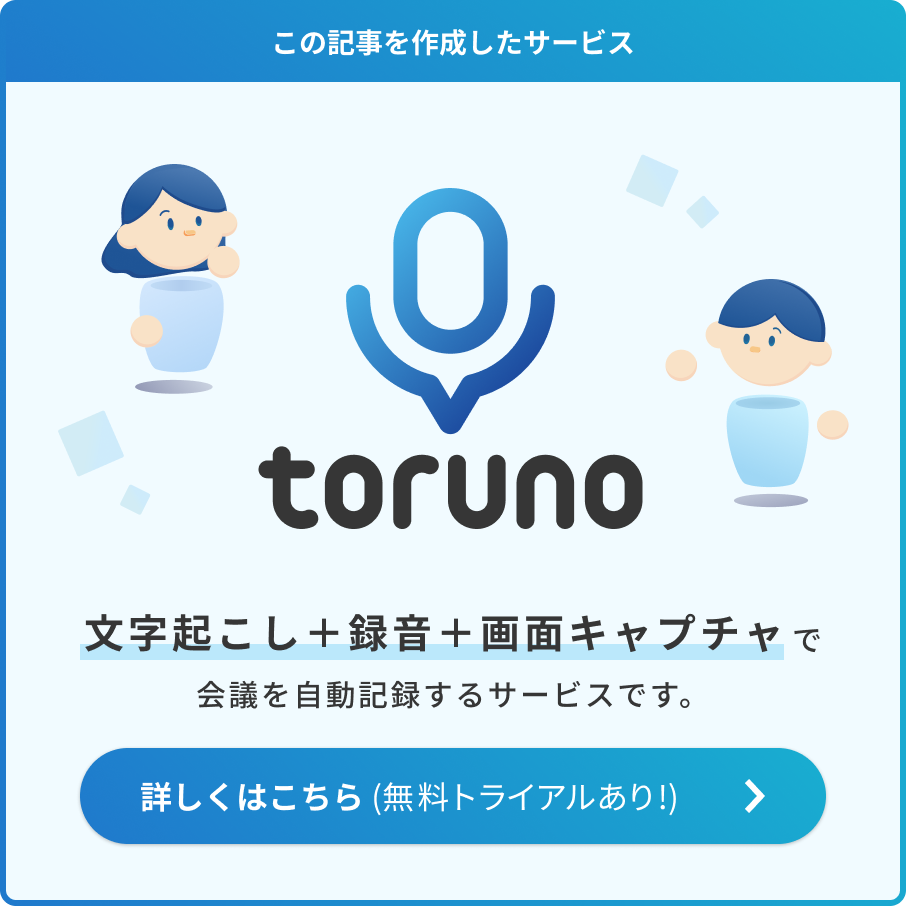 文字起こし&議事録作成なら「toruno(トルノ)」がおすすめです。