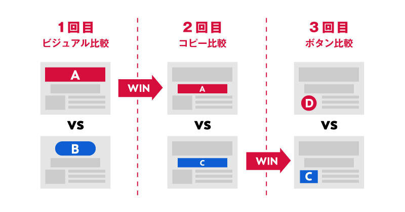 一度に大きな改善効果を求めず、ABテストを繰り返しながら地道に改善を重ねていくことが重要です。仮説が「正しかった」「正しくなかった」ということに一喜一憂するのではなく、徐々に改善の糸口を探っていくスタンスで臨むことが重要です。