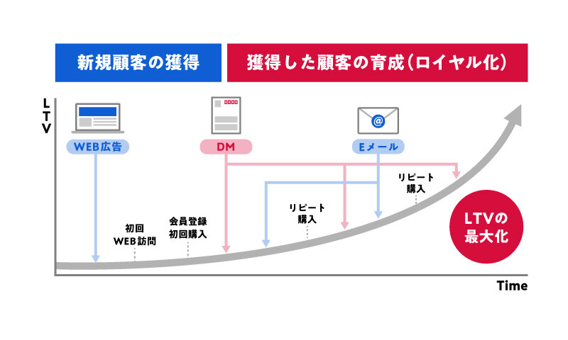 LTVを最大化させる3番目の施策は、購入してもらう回数を増やすことです。新規顧客が開拓できなくても、既存顧客の利用頻度が上がれば、売上はアップします。また、既存顧客のリピート率を上げることで、LTVの値を高めることも可能です。