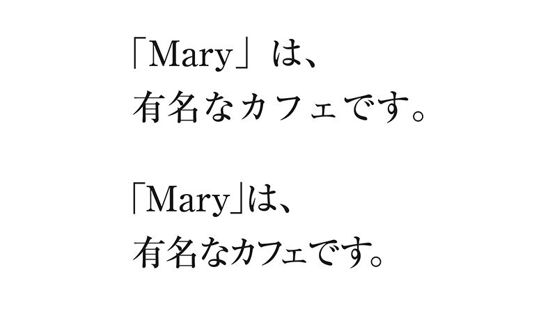 またカギ括弧や句読点、拗促音の周囲も空きができます。特に見出しなどではパラパラとして見えるので、文字詰めして調整します