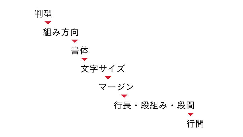 レイアウトを決める順序は、大体このようになります。ここでの文字の設定は、あくまでも本文が基準です