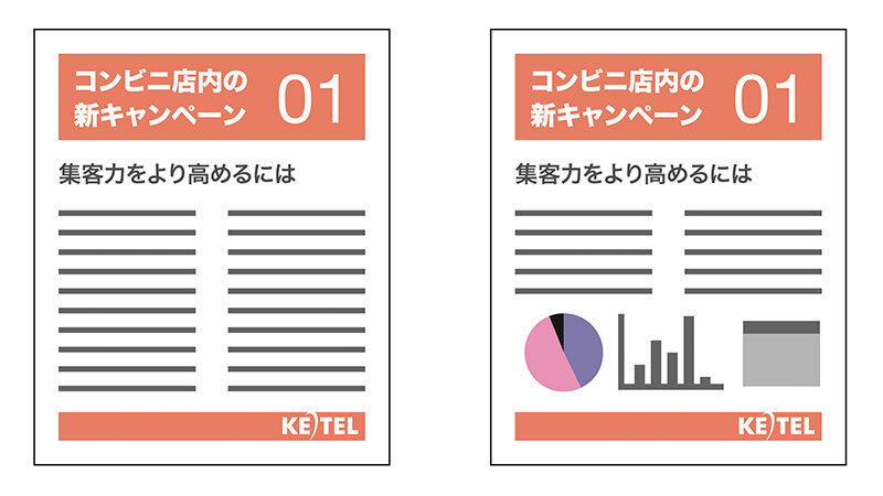 文字には地味な印象があるかもしれませんが、ビジュアルとうまく組み合わせる(左)ことでより伝わりやすく、豊かな表現を生み出すことができます