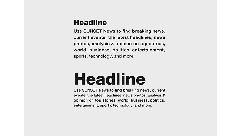 見出しと本文のサイズの対比も重要です。大きく差をつけることでよりセンセーショナルに(下)。差が小さいと穏やかな印象(上)になります