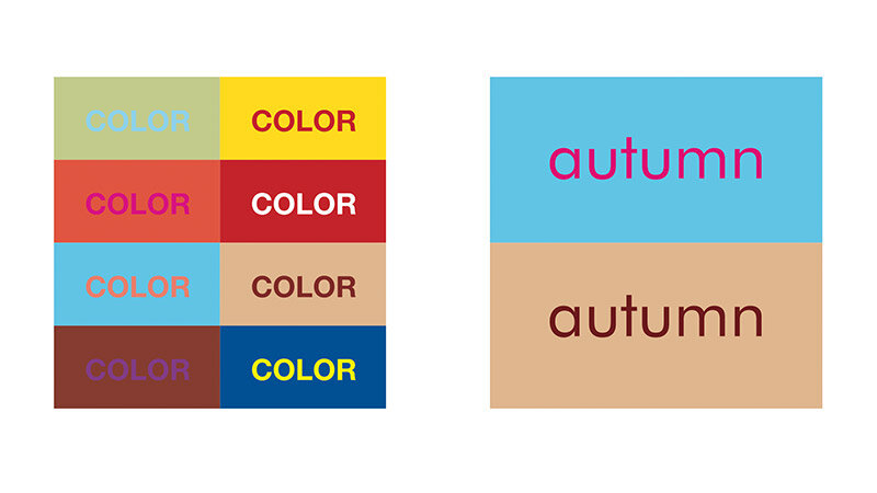 しかし配色が人に与える印象は、とても直感的で印象に残るものです。また季節や楽しさなどの演出に色は欠かせません。文字の中に色を取り入れるのは、言葉とイメージを一体化させるために重要な手法のひとつです。