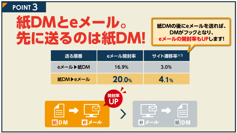 POINT3:紙DM とeメール。先に送るのは紙DM!