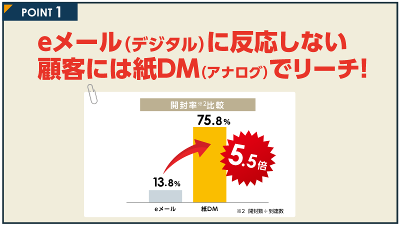 POINT1:eメール(デジタル)に反応しない顧客には紙DM(アナログ)でリーチ!